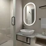 Gästerna i den här lägenheten erbjuds ett badrum med hårtorkar.